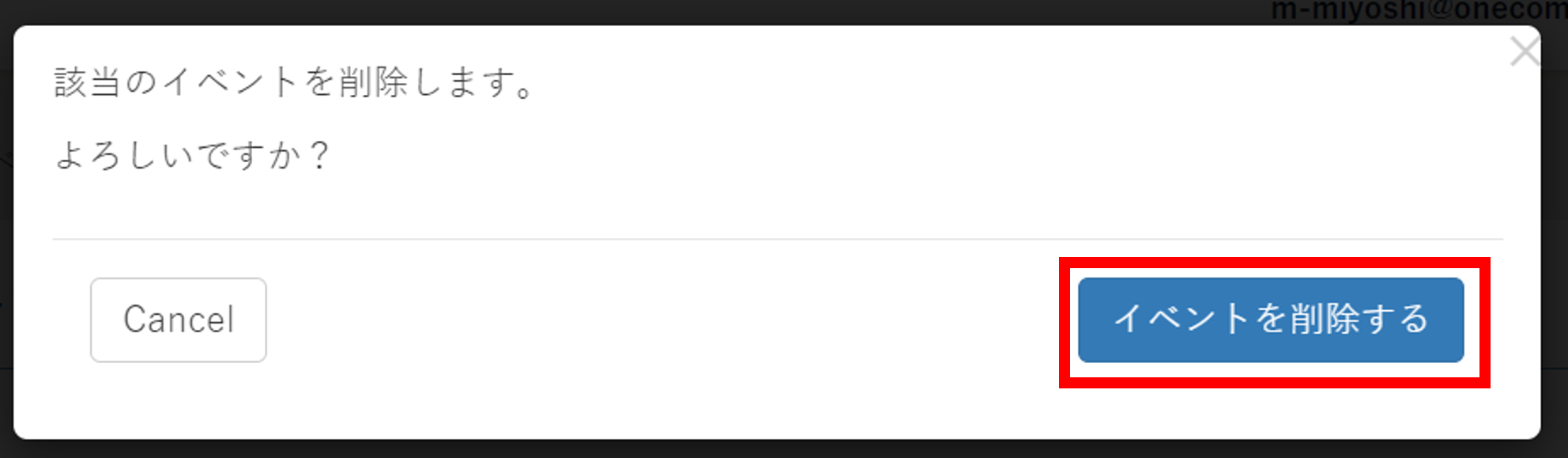 押下すると確認メッセージが表示されますので、”イベントを削除する” を押下して削除を実行してください。