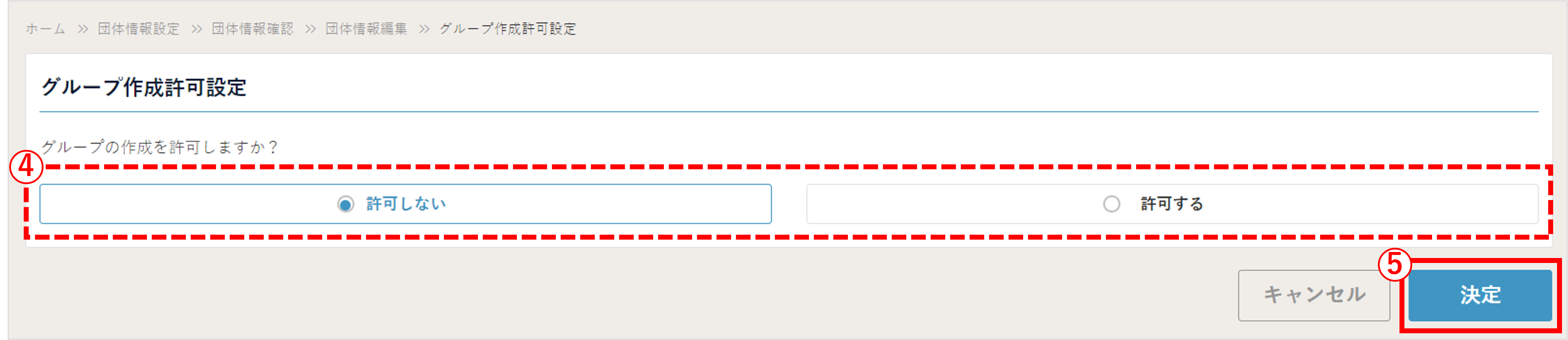 [団体情報確認]グループ作成許可設定の確認/編集