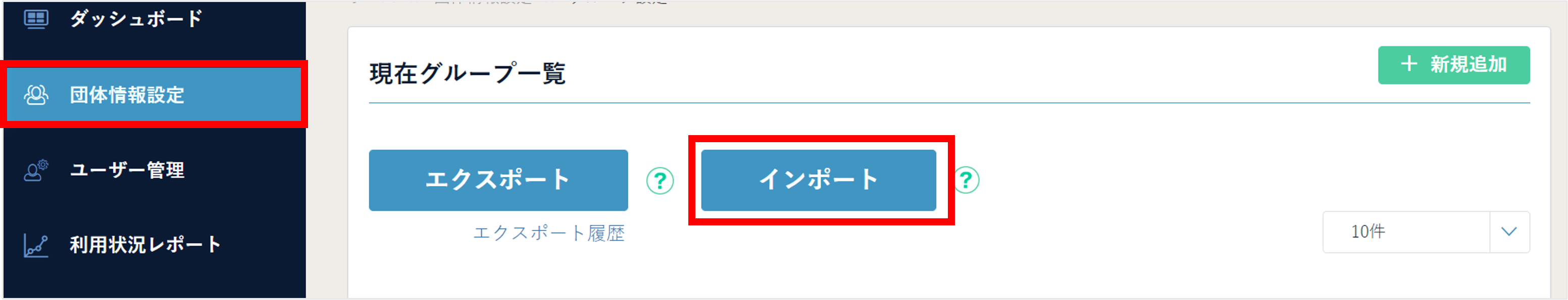 グループ設定の”インポート”からは、CSVファイルを活用してグループ情報を一括更新することができます。