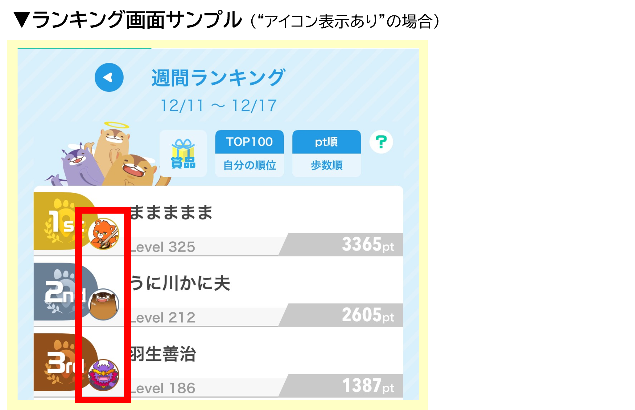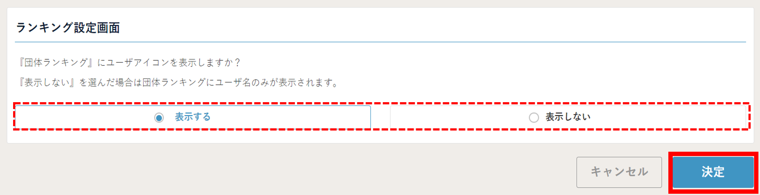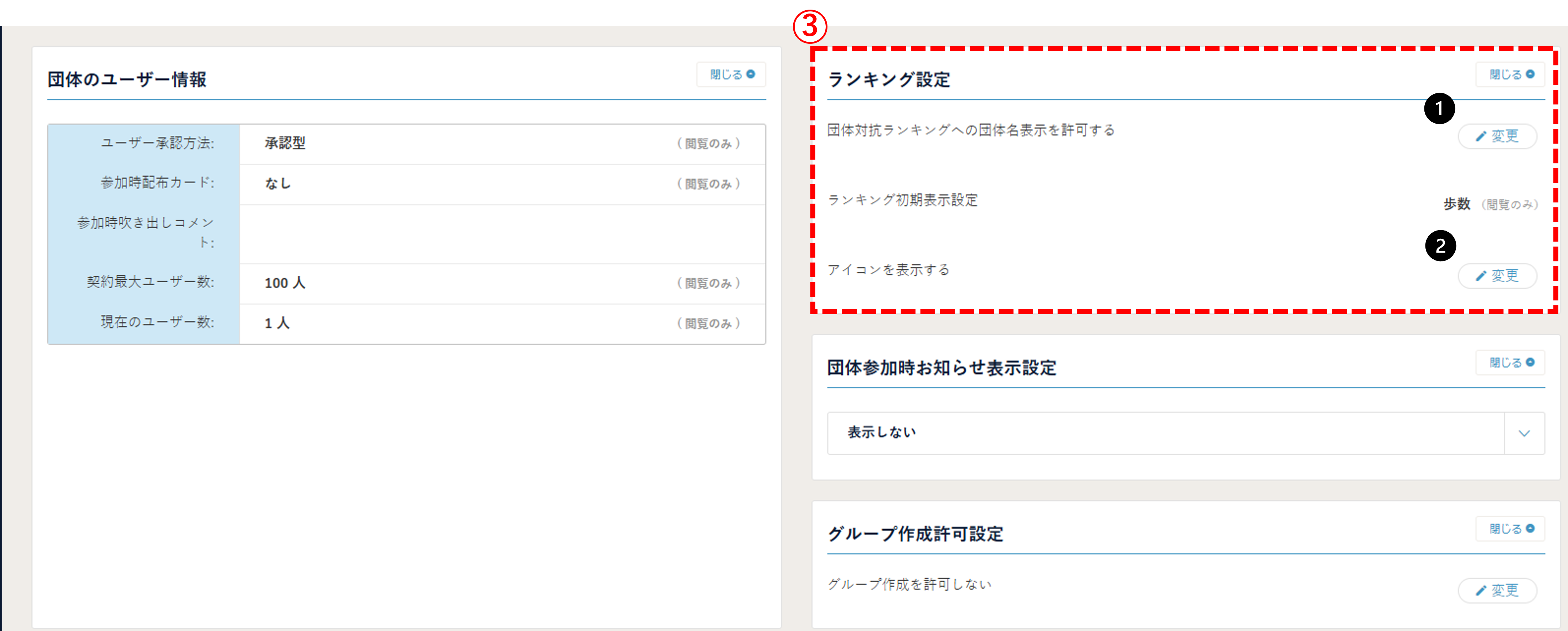 団体内ランキングおけるユーザーアイコンの表示可否を 『変更』ボタンから編集できます。