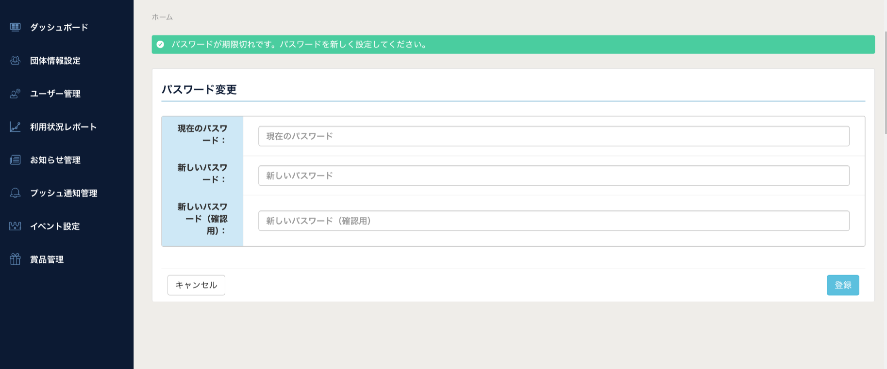 パスワードの有効期限が切れるとパスワード変更画面が表示されます。