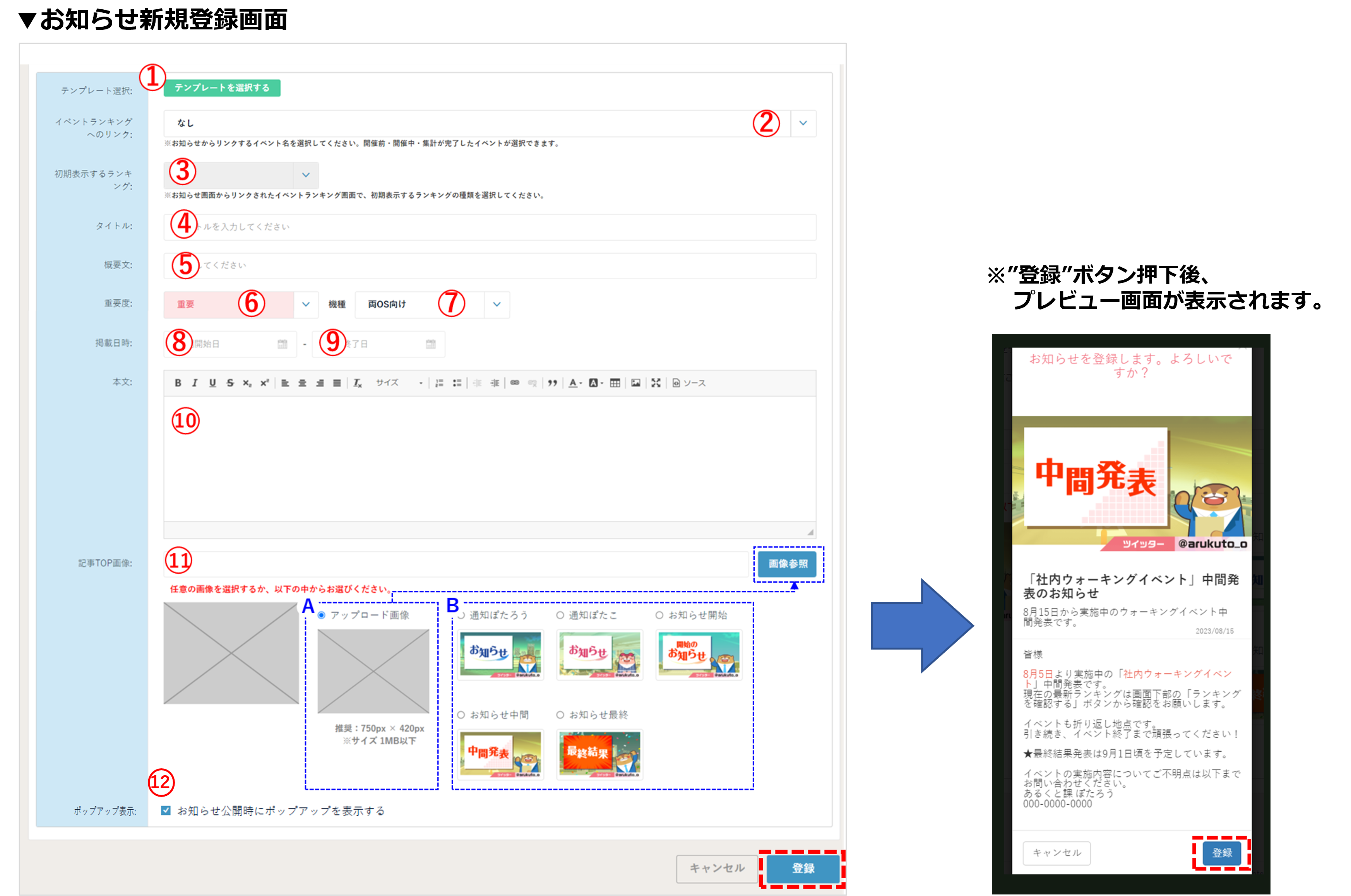 お知らせの新規登録