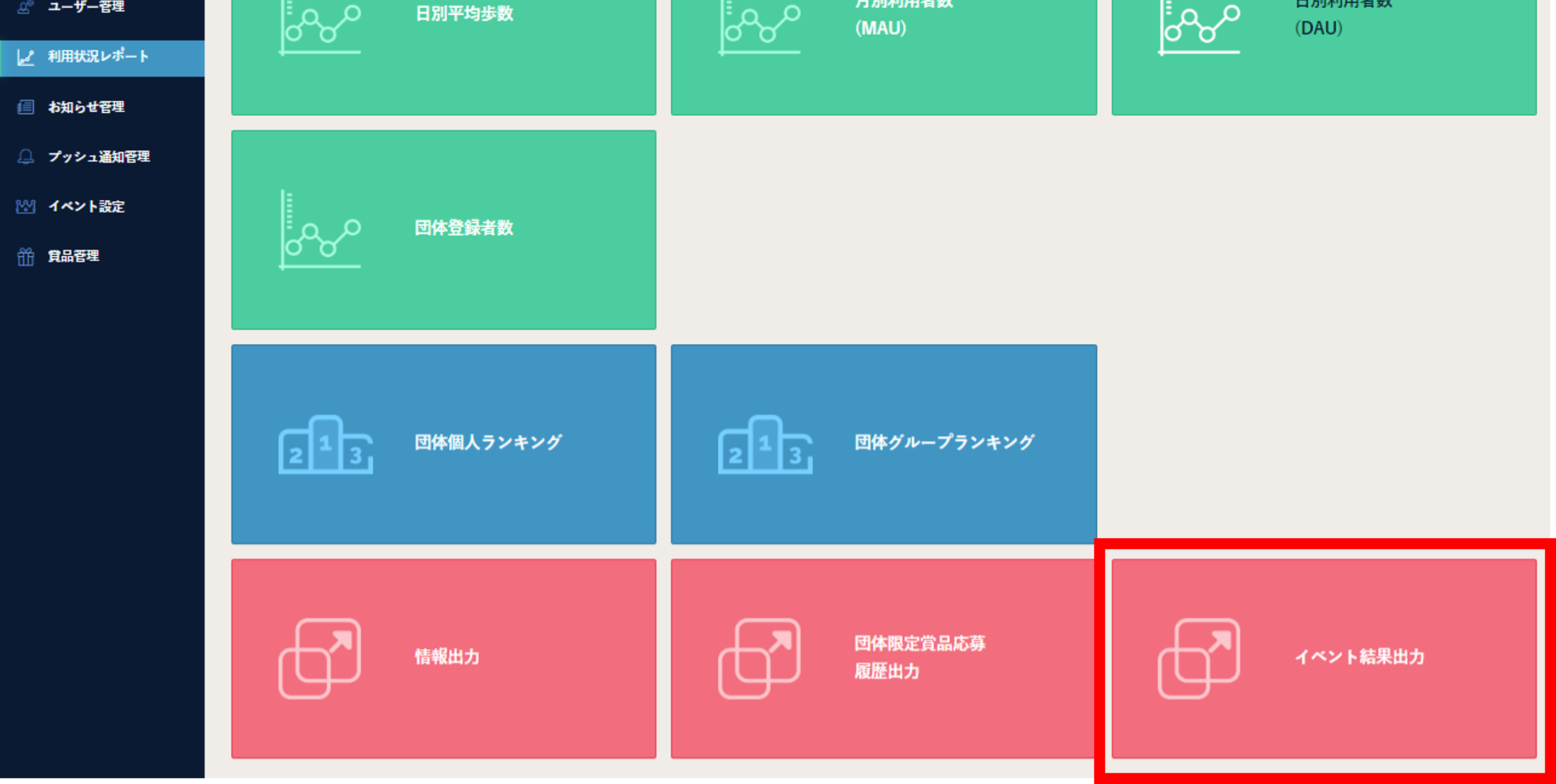 “イベント結果” を選択すると、イベント設定トップ画面へ遷移します。